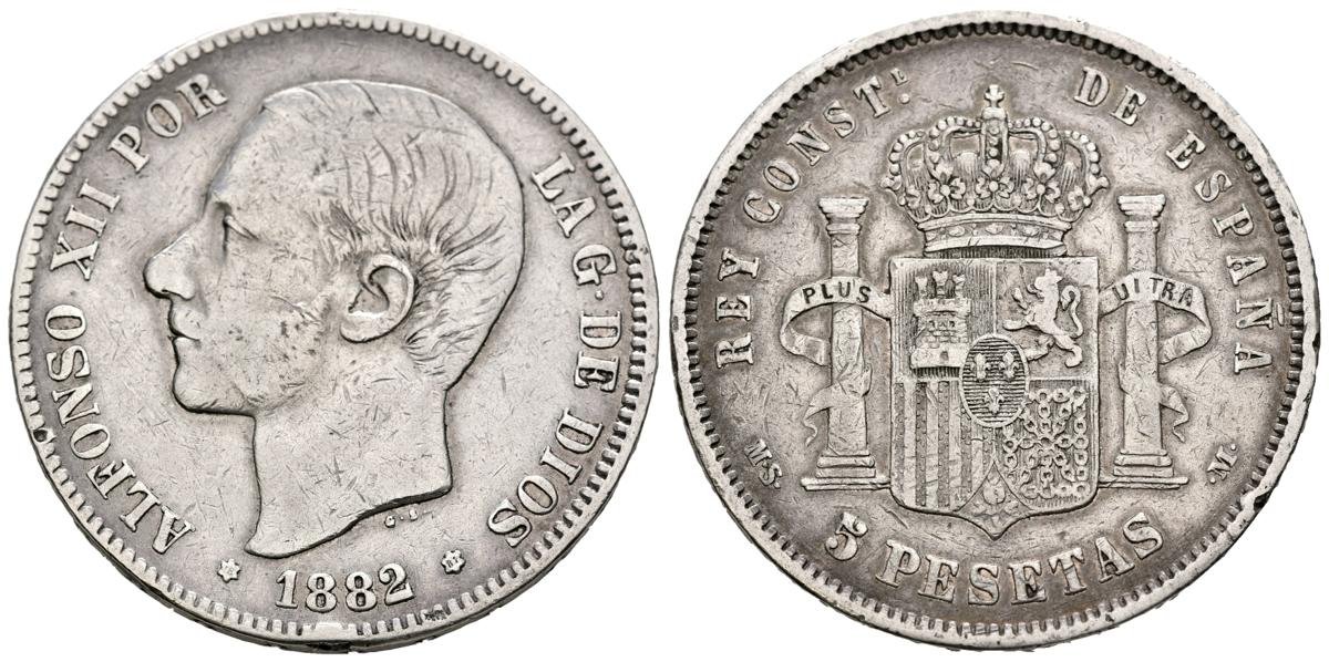 ALFONSO XII (1874-1885). 5 pesetas. (Ar. 24.69g/37mm). 1882 *18-81. Madrid MSM. (Cal-2019-48). Almost Very Fine. Limited.