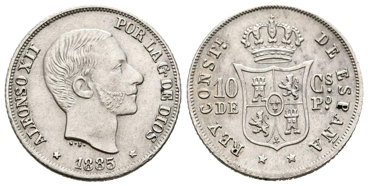 ALFONSO XII (1874-1885). 10 Cents (Ar. 2.57g/18mm). 1885. Manilla. (Cal-2019-102). Almost Extremely Fine.