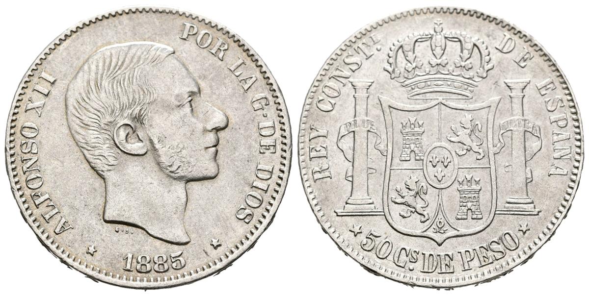 ALFONSO XII (1874-1885). 50 cents. (Ar. 12.84g/30mm). 1885. Manilla. (Cal-2019-114). Very Fine.