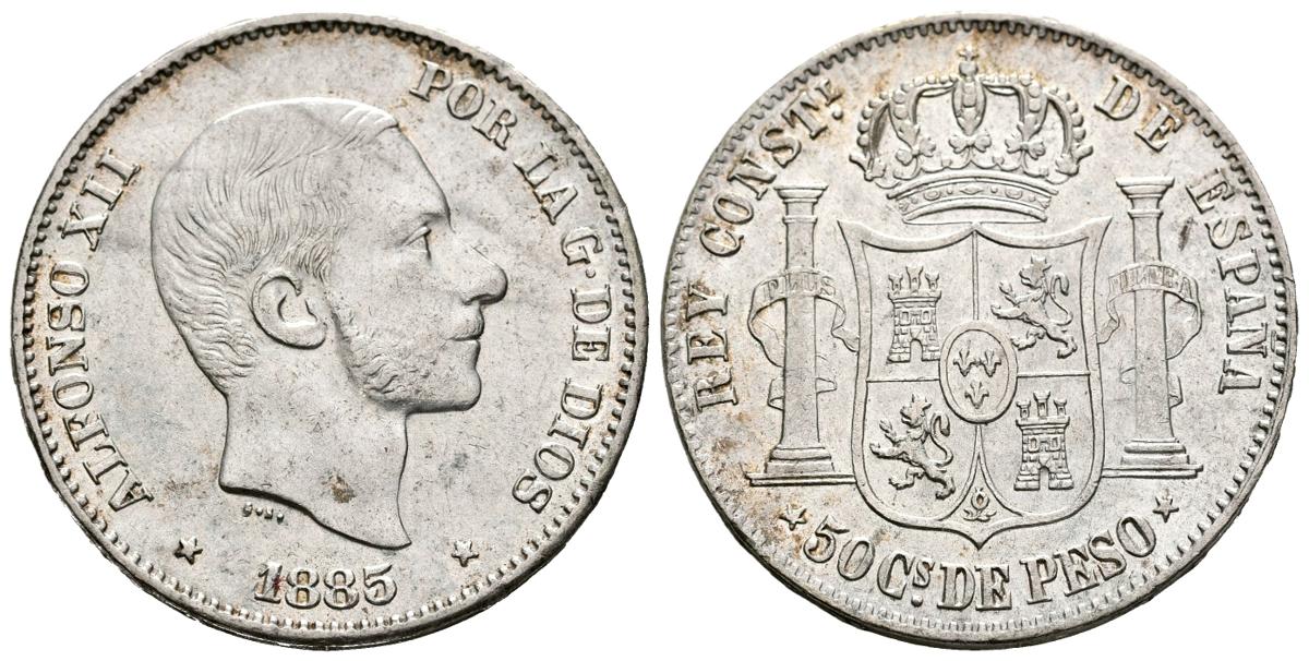 ALFONSO XII (1874-1885). 50 cents. (Ar. 12.89g/30mm). 1885. Manilla. (Cal-2019-124). Almost Extremely Fine. Remains of original shine.