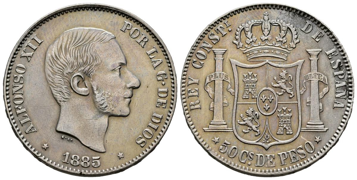 ALFONSO XII (1874-1885). 50 cents. (Ar. 12.86g/30mm). 1885. Manilla. (Cal-2019-124). Good Very Fine. Golden patina.