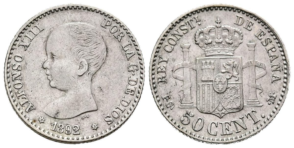 ALFONSO XIII (1885-1931). 50 cents. (Ar. 2.49g/18mm). 1892/82 *6-2. Madrid PGM. (Cal-2019-30). Good Very Fine. Limited.