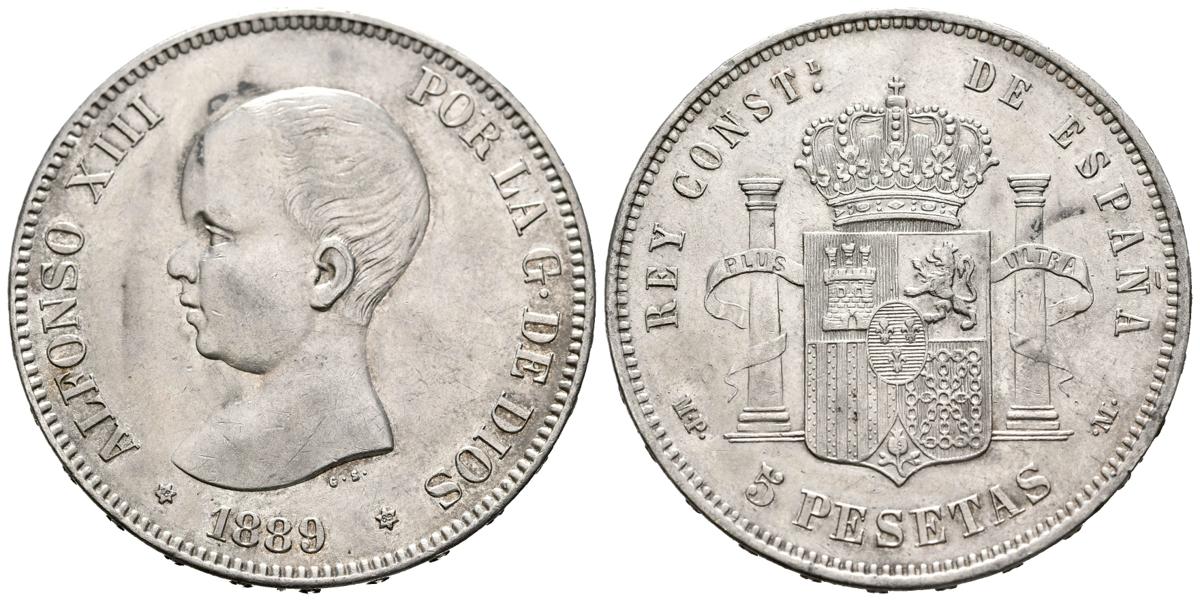 ALFONSO XIII (1885-1931). 5 pesetas. (Ar. 25.10g/37mm). 1889 *18-89. Madrid MPM. (Cal-2019-93). Extremely Fine. Slight marks.