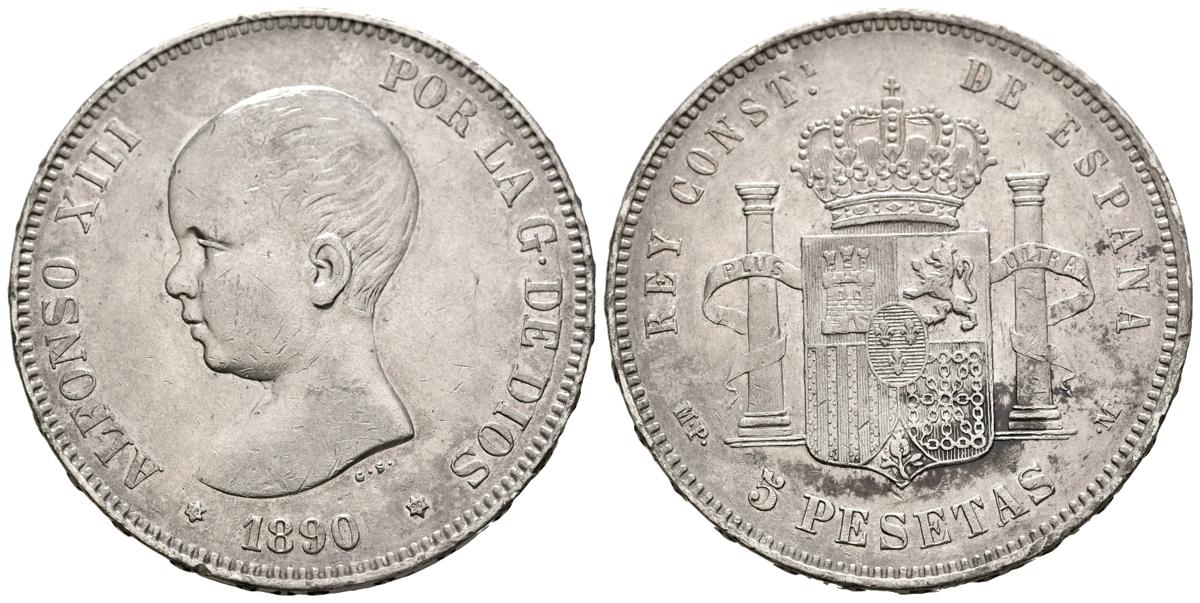 ALFONSO XIII (1885-1931). 5 pesetas. (Ar. 24.88g /37mm). 1890 * 18-90. Madrid MPM. (Cal-2019-95). Good Very Fine. marquitas. Nice patina.