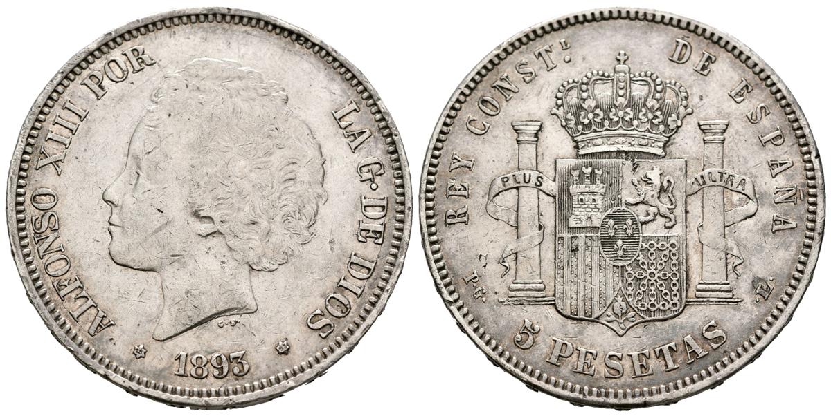 ALFONSO XIII (1885-1931). 5 pesetas. (Ar. 24.91g/37mm). 1893 *18-93. Madrid PGL. (Cal-2019-102). Very Fine.
