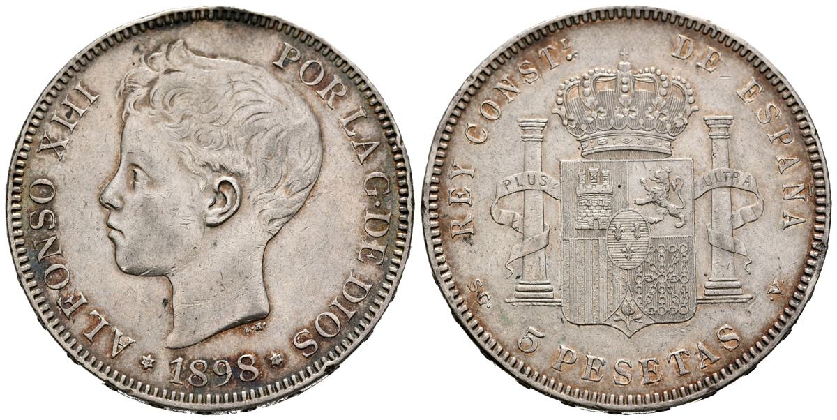 ALFONSO XIII (1885-1931). 5 pesetas. (Ar. 24.91g/37mm). 1898 *18-98. Madrid SGV. (Cal-2019-109). Good Very Fine.