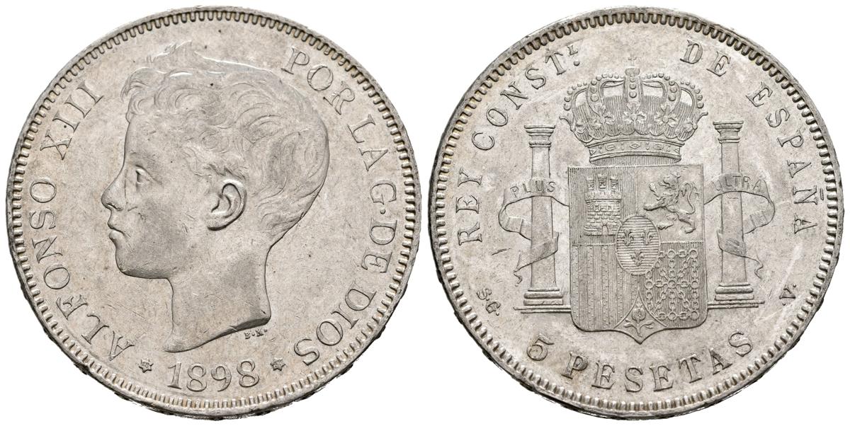 English ALFONSO XIII (1885-1931). 5 pesetas. (Ar. 24.82g /37mm). 1898 * 18-98. Madrid SGV. (Cal-2019-109). Good Very Fine.