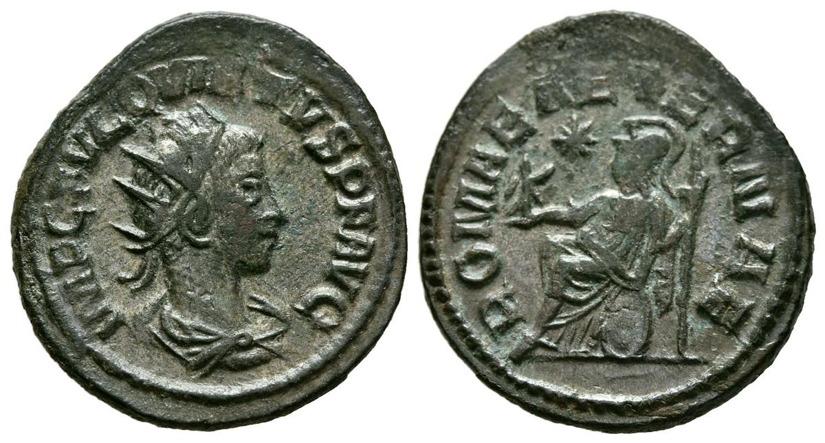 QUIETUS. Antoninian. (Ae. 3.41g/21mm). 260-261 AD Samosata. (RIC 9). Obv: Radiated and draped bust of Quieto to right, around legend: IMP C FVL QVIETVS PF AVG. Rev: Rome seated to the left carrying a scepter and Victoria with a laurel wreath, around legend: ROMAE AETERNAE. Good Very Fine. Scarce specimen.