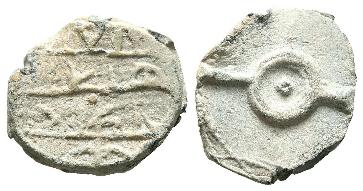 English Umayyad period. Monetiform amulet from al-Andalus. (Pb. 1.49/14mm). Archaic Kufic script. Legend in IA and symbol in II.A. (Gaspariño type B.III). Good Very Fine.