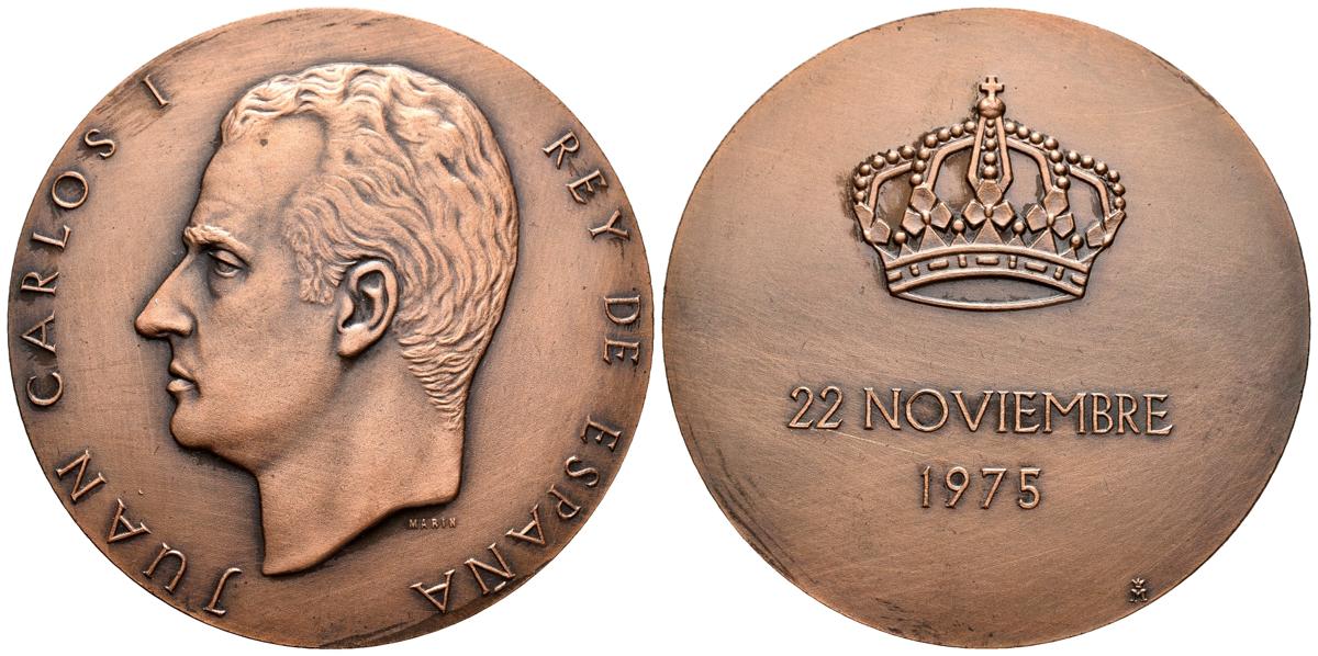 JUAN CARLOS I Y SOFIA REYES DE ESPAÑA. Serie de 2 medallas realizadas por la FNMT. 1975. Grabador: Marín. 80mm. SC.
