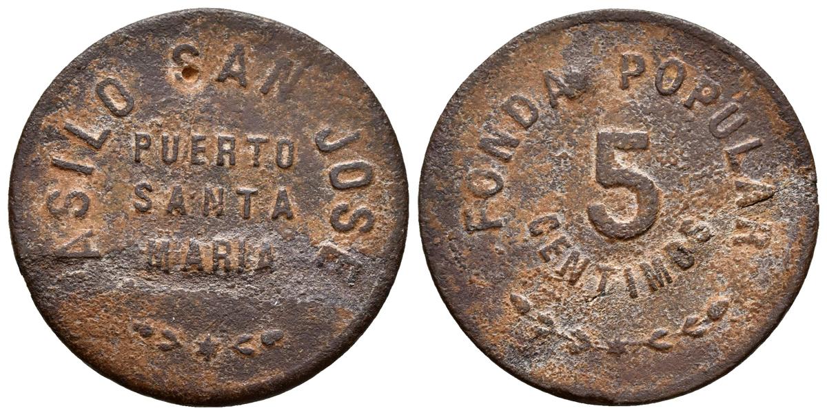 PUERTO DE SANTA MARIA (CADIZ). 5 Céntimos. Asilo San José-Fonda Popular. Ae. 2,78g. MBC-.