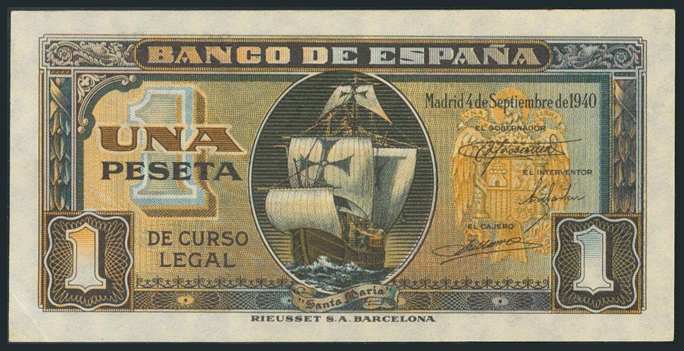 1 Peseta. 4 de Septiembre de 1940. Sin serie. (Edifil 2017: 442). EBC.