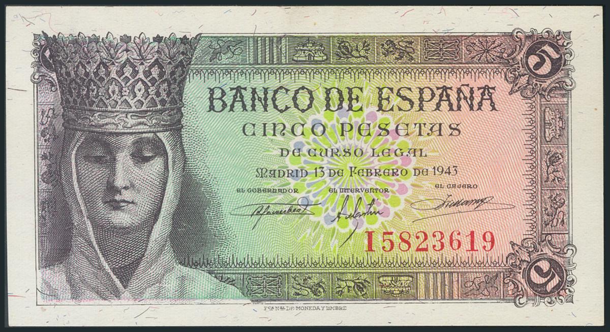 5 Pesetas. 13 de Febrero de 1943. Serie I. (Edifil 2017: 446a). SC.