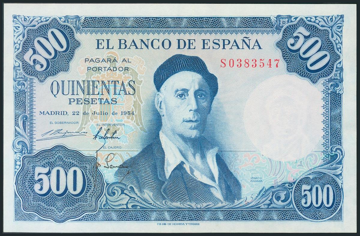500 Pesetas. 22 de Julio de 1954. Serie S. (Edifil 2017: 468b). EBC.