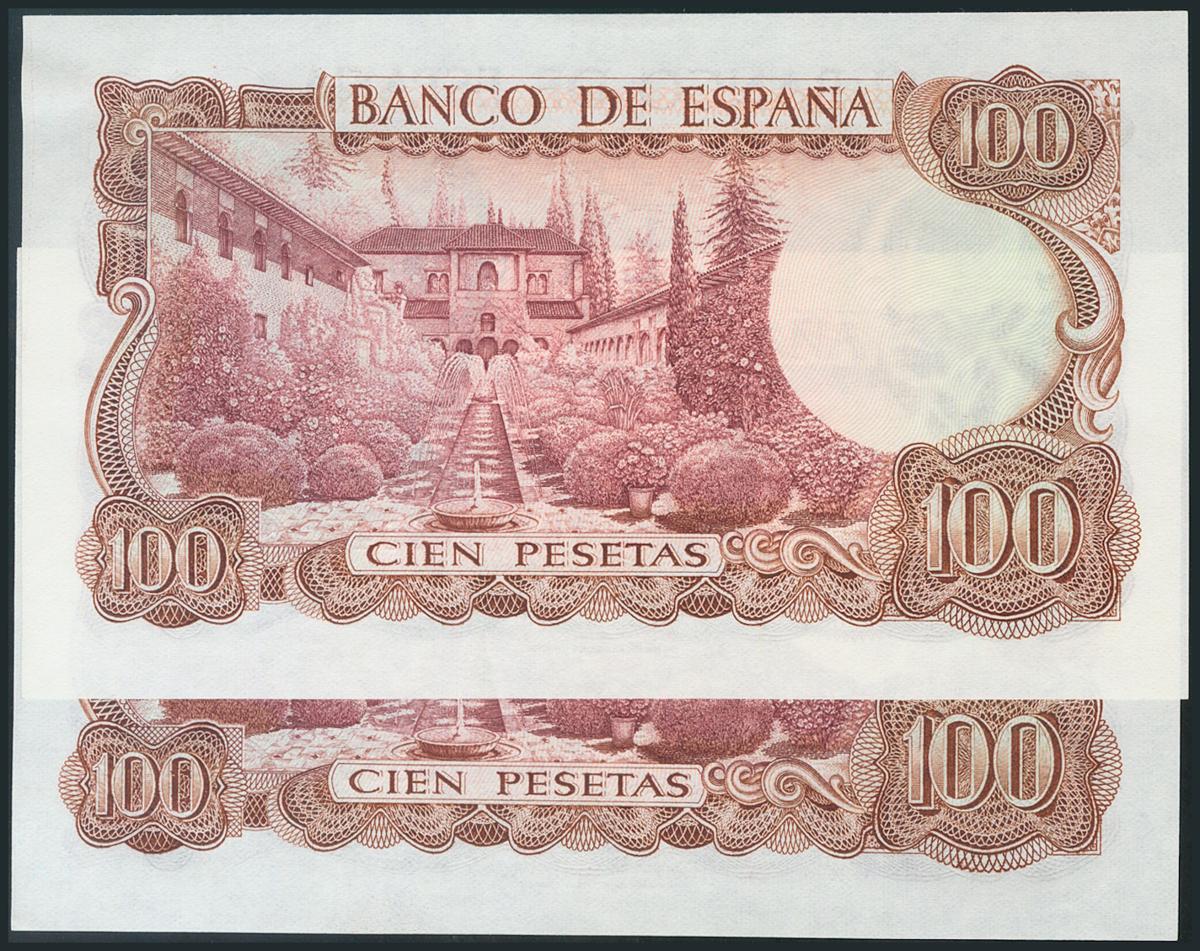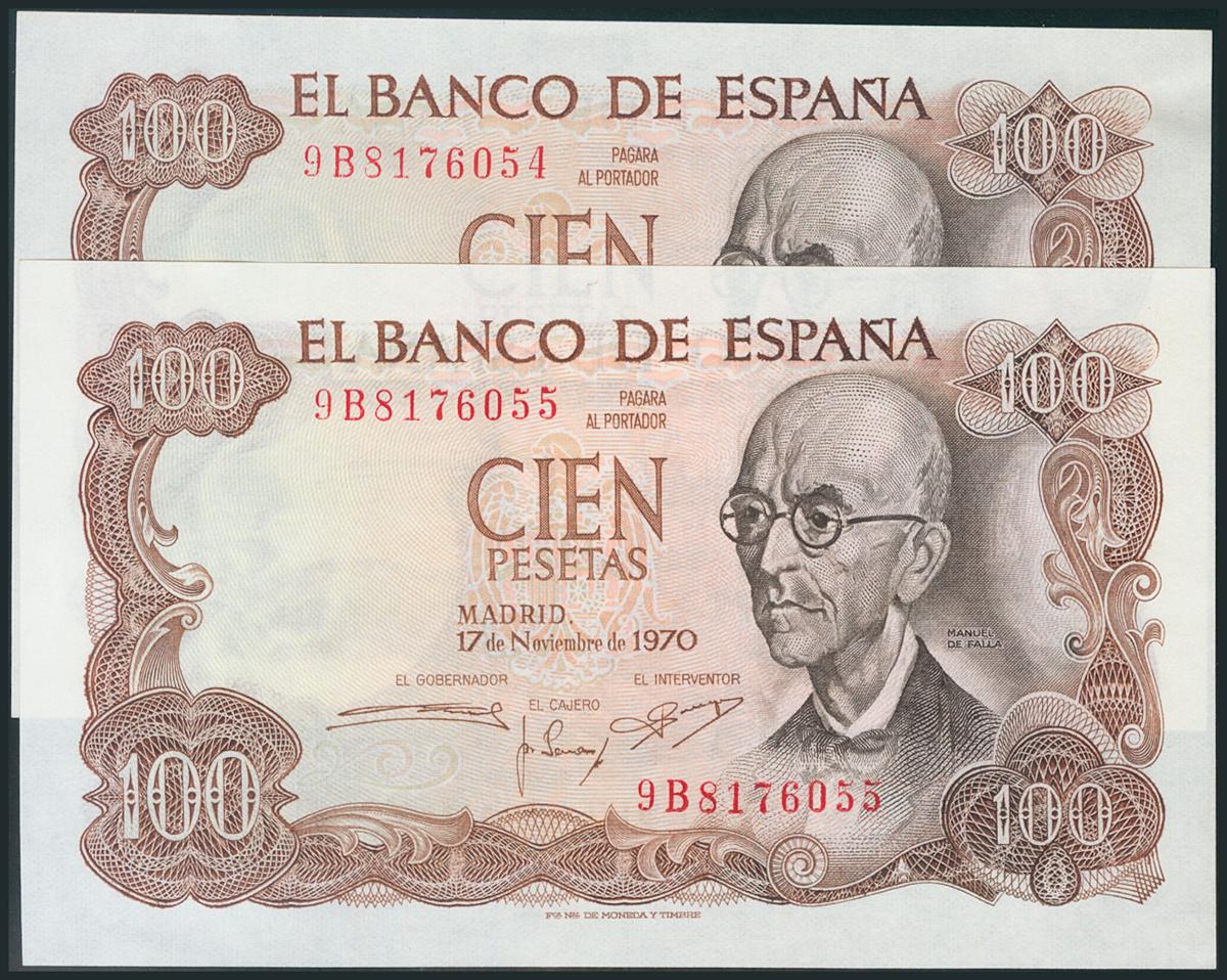 100 Pesetas. 17 de Noviembre de 1970. Pareja correlativa. Serie especial 9B. (Edifil 2017: 472d). SC.