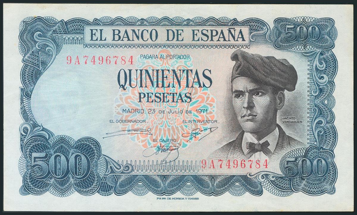 500 Pesetas. 23 de Julio de 1971. Serie 9A. (Edifil 2017: 473b). EBC.