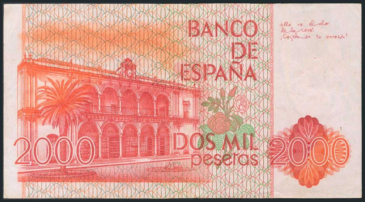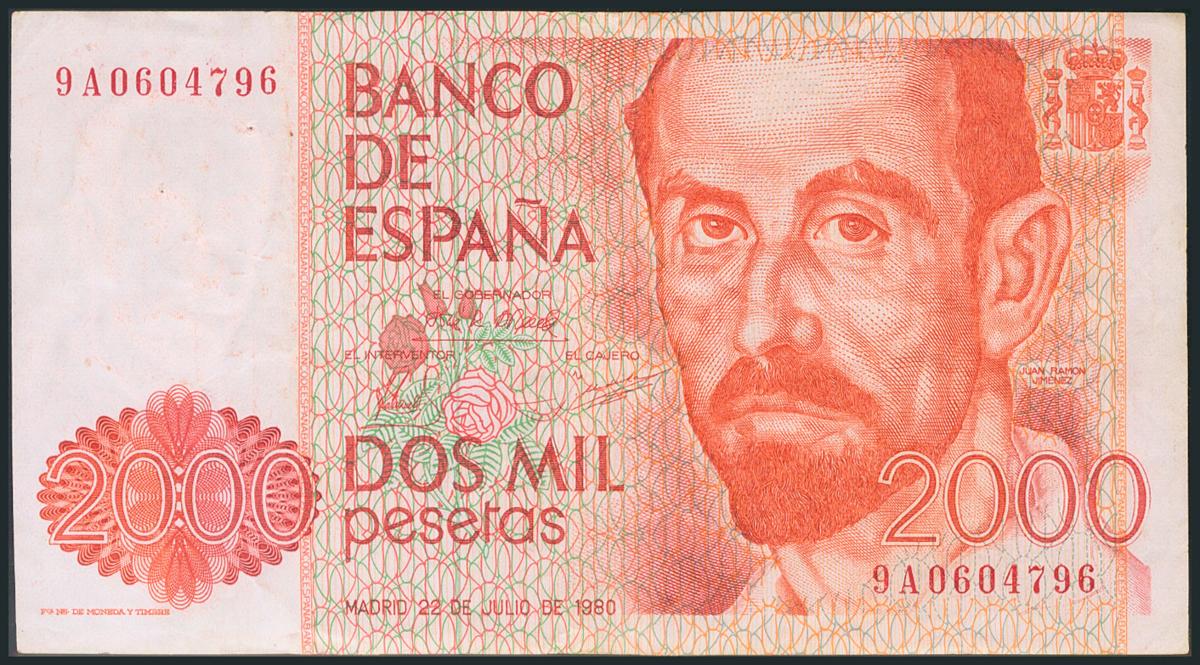 2000 Pesetas. 22 de Julio de 1980. Serie 9A. Dos puntitos de grapa. (Edifil 2017: 479b). MBC.