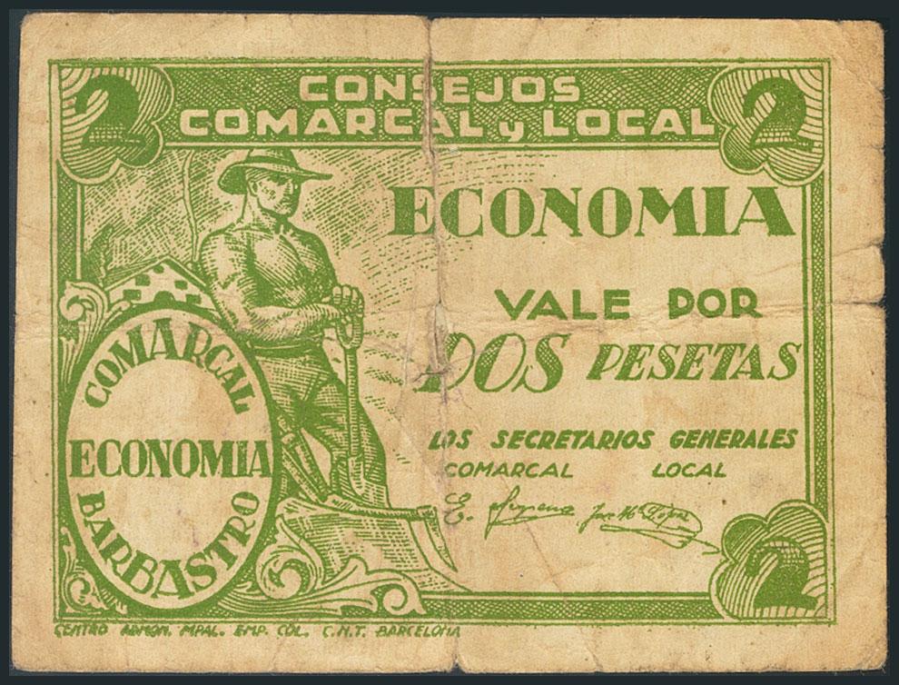 BARBASTRO (HUESCA). 2 Pesetas. (1937ca). (González: 884). RC.