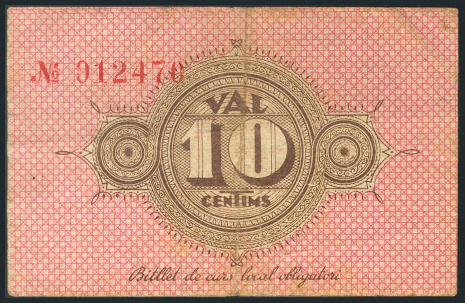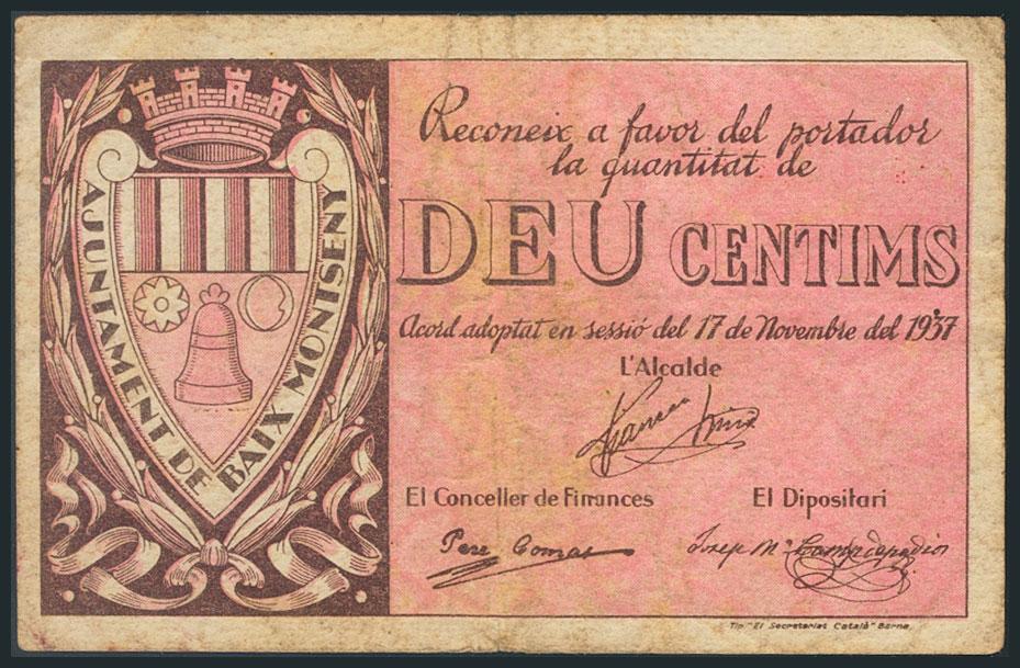 BAX MONTSENY (BARCELONA). 10 Céntimos. 17 de Noviembre de 1937. BC.
