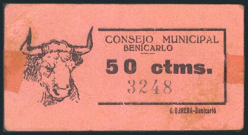 BENICARLO (CASTELLON). 50 Céntimos. (1937ca). (González: 1072). Inusual. BC.