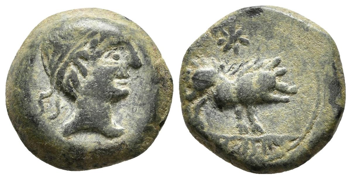 CASTULO. Cuadrante. 180 a.C. Cazlona (Jaén) A/ Cabeza masculina a derecha. R/ Jabalí a derecha, encima estrella, debajo CaSTeLE. FAB-735. Ae. 3,74g. MBC.
