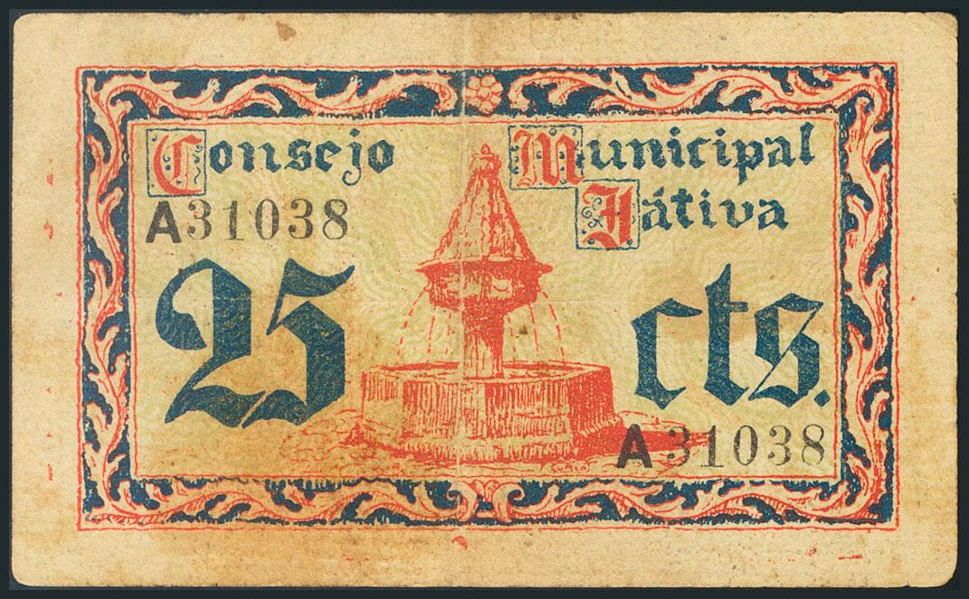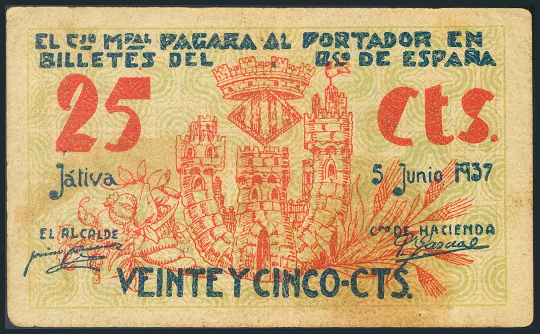 JATIVA (VALENCIA). 25 Céntimos. 5 de Junio de 1937. (González: 3024). BC.