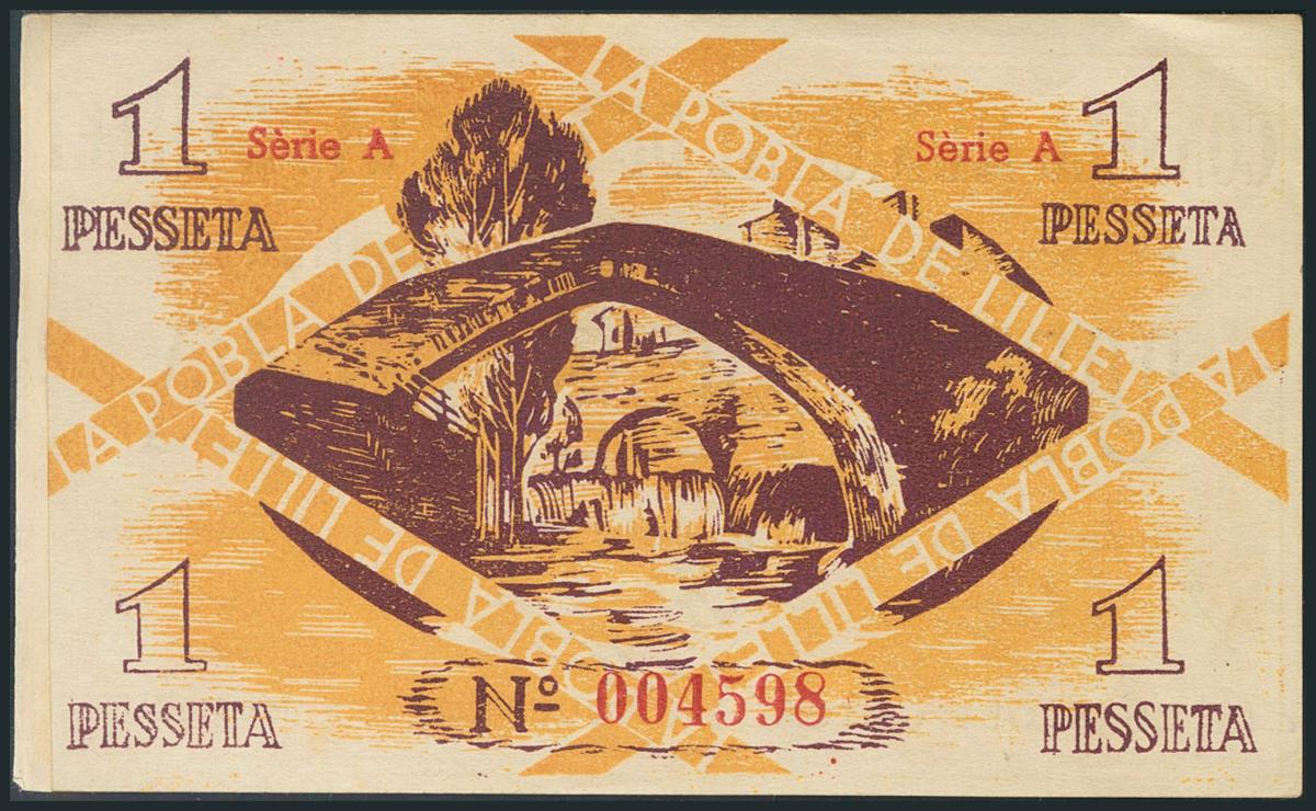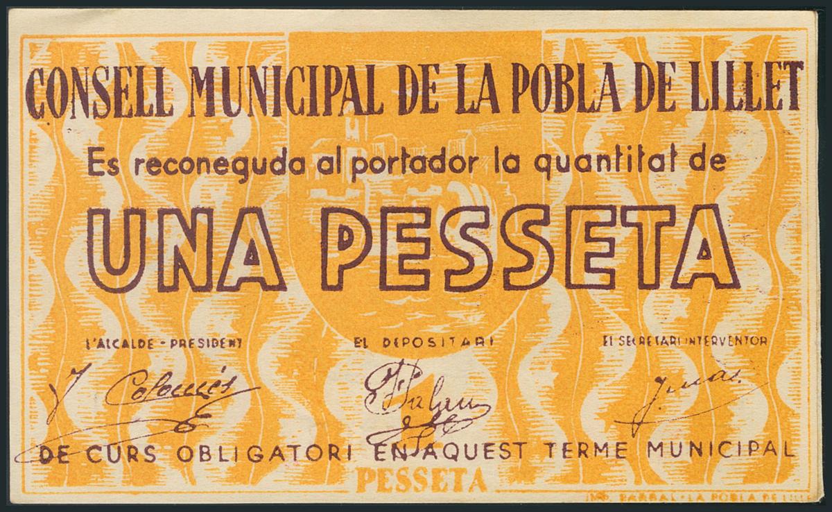 LA POBLA DE LILLET (BARCELONA). 1 Peseta. (1937ca). Serie A. EBC.