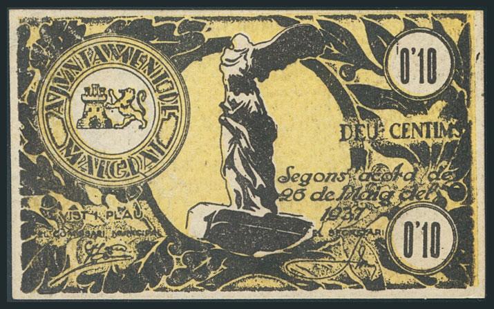 MALGRAT (BARCELONA). 10 Céntimos. 26 de Mayo de 1937. Inusual. SC.