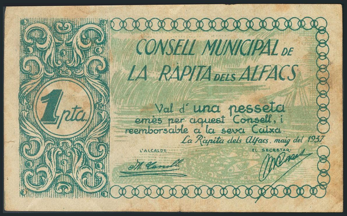 SAN CARLOS DE LA RAPITA (TARRAGONA). 1 Peseta. Mayo de 1937. BC.