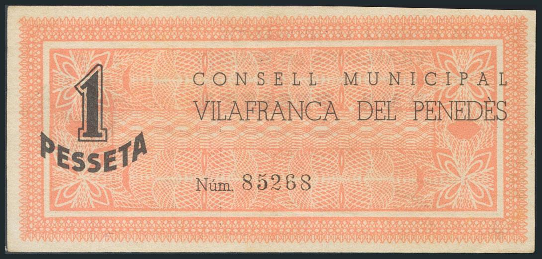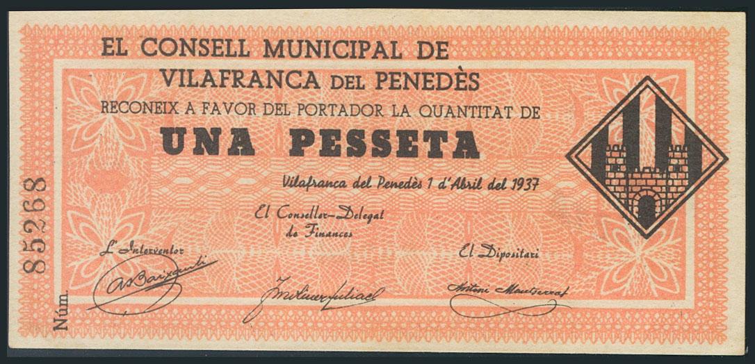 VILLAFRANCA (BARCELONA). 1 Peseta. 7 de Abril de 1937. EBC.