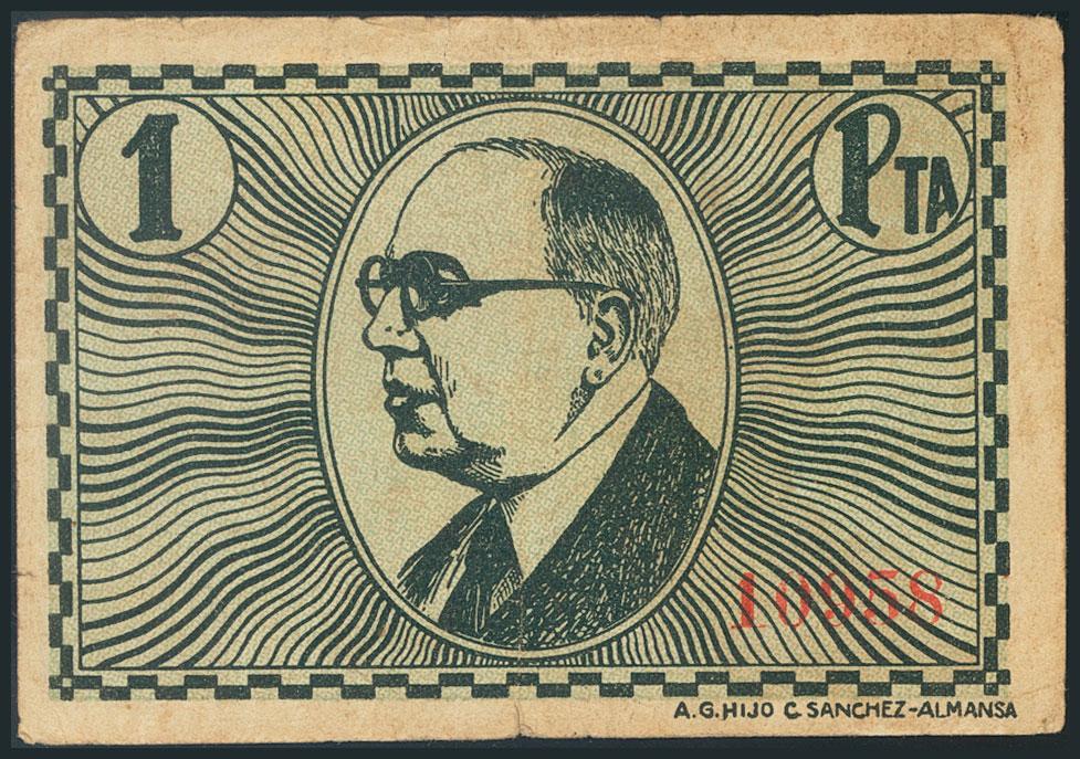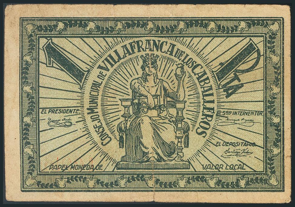 VILLAFRANCA DE LOS CABALLEROS (TOLEDO). 1 Peseta. (1936ca). (González: 5523). BC+.