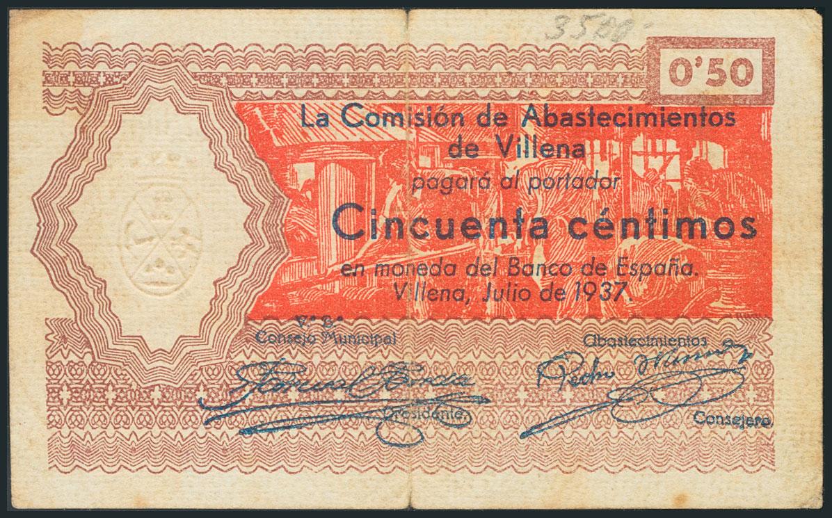 VILLENA (ALICANTE). 50 Céntimos. Julio de 1937. (González: 5763).