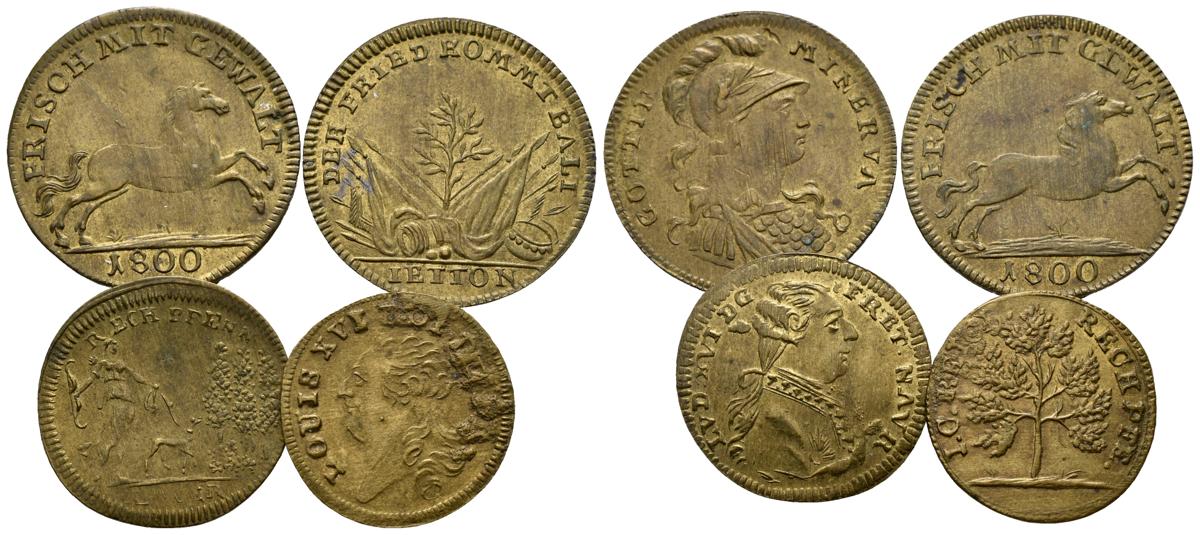 ALEMANIA-FRANCIA. Lote compuesto por 4 Jetones. Dos de Alemania 1800 y dos de Luois XVI. La. MBC+/EBC. A EXAMINAR.