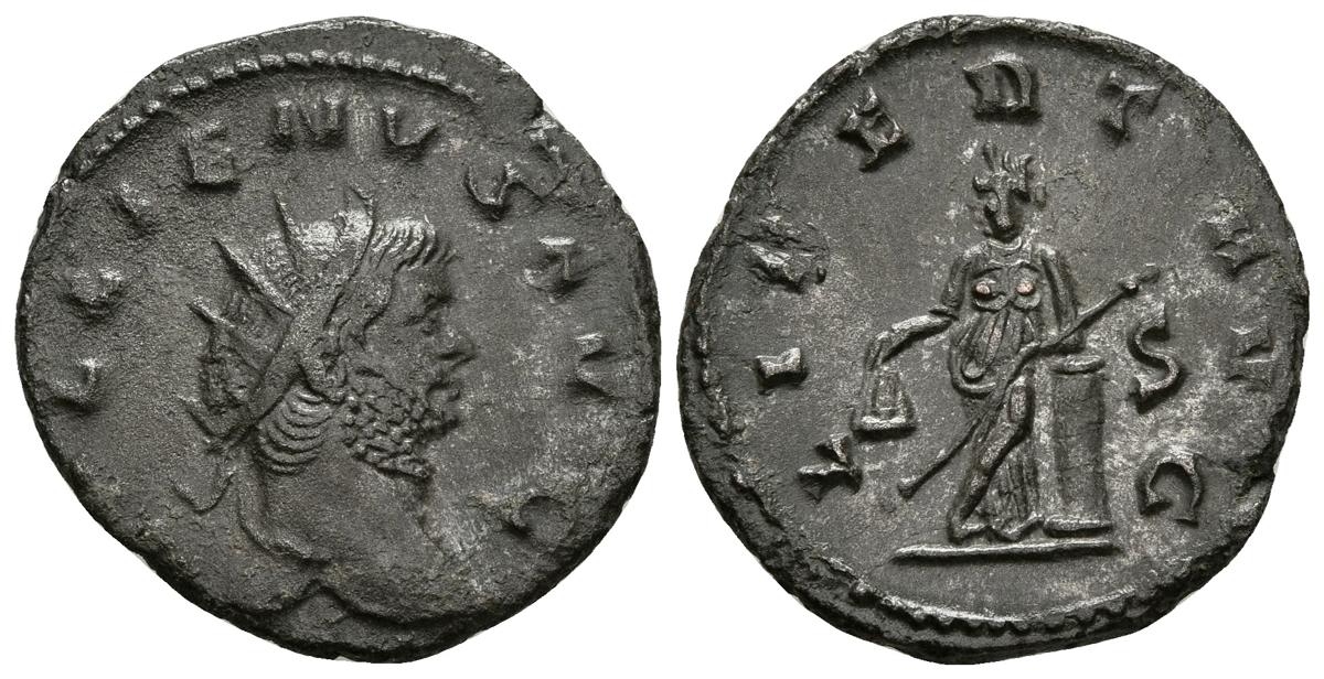 GALIENO. Antoniniano. 262 d.C. Roma. A/ Busto radiado a derecha. GALLIENVS AVG. R/ Libertas estante a izquierda portando pileus y cetro, apoyándose en columna. LIBERT AVG, en exergo S. MIR 472f. Ae. 3,21g. MBC+.