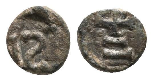 VISIGODOS. Nummus. Segunda mitad del siglo VII d.C. Ispalis (Sevilla). A/ SP invertida. R/ Cruz latina sobre triple grada. Crusafont Visigodo Grupo A, No cita este tipo. Ae. 0,33g. MBC+. Rara