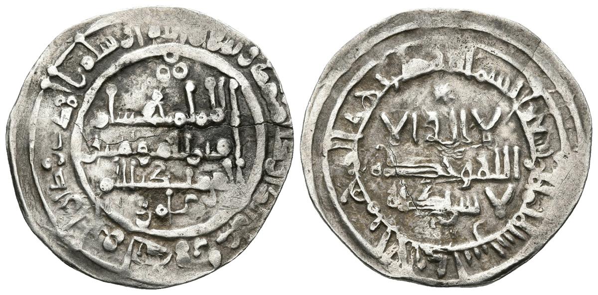 CALIFATO DE CORDOBA. Hisham II. Dirham. 378H. Al-Andalus. Citando a `Amir en la IIA. V-508. Ar. 2,78g. Grieta. MBC.