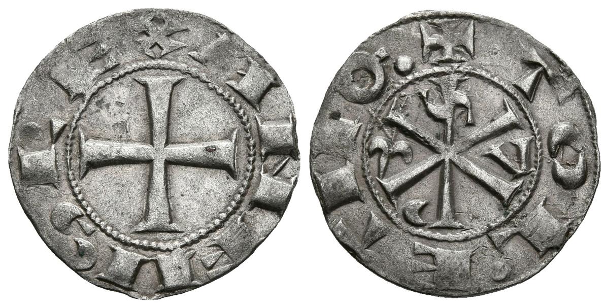 ALFONSO VI. Dinero. (1073-1109). Toledo. R/ Leyenda +TOL·ETVO y última O con línea. Mozo A6:11.10; AB. 5var. Ve. 1,14g. MBC+.