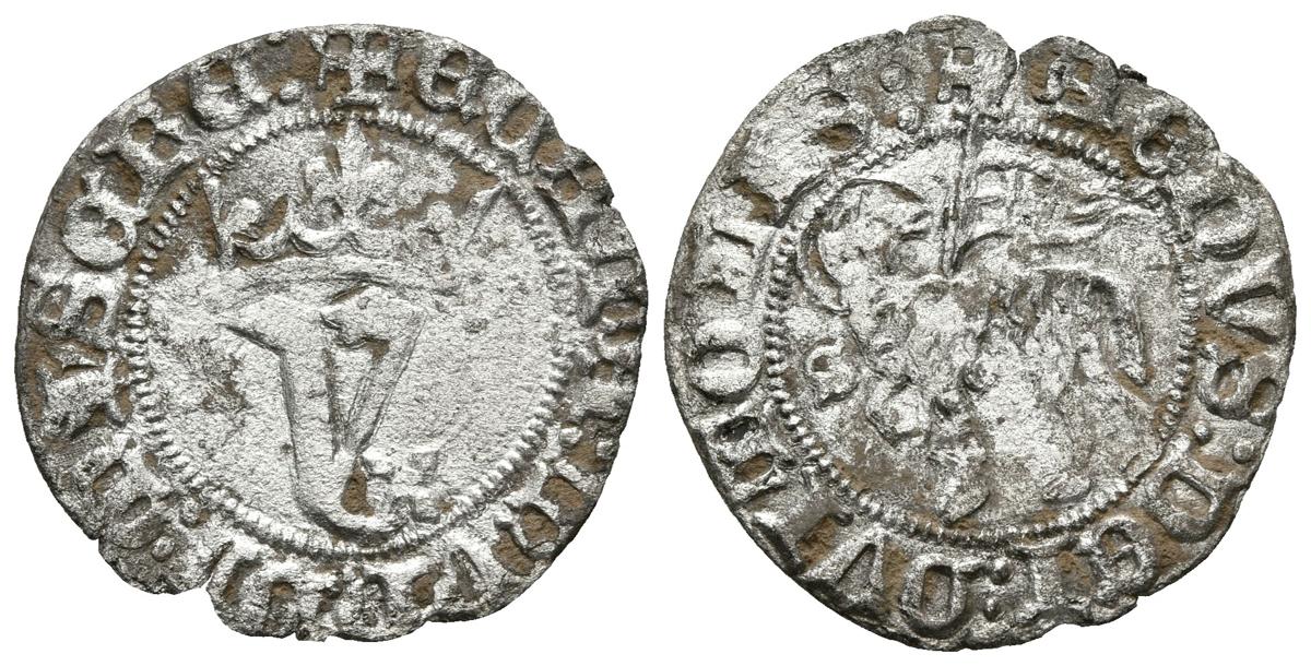 JUAN I. Blanca del Agnus Dei. (1379-1390). Sevilla. A/ + AGNVS : DEI : QVI TOLIS : . R/ + E CATA : MVNDI : MISERE. AB 555. Ve. 1,29g. MBC+/MBC.