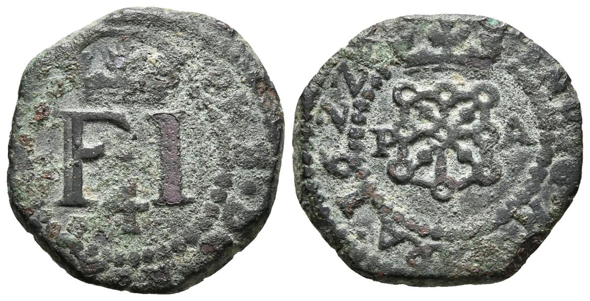 FELIPE II. 4 Cornados. 1622. Pamplona. Los 2 de la fecha como Z. Cal-336; R.Ros 4.5.14. Ae. 3,55g. MBC.