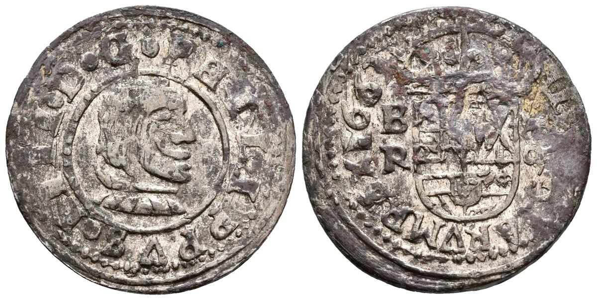 FELIPE IV. 16 Maravedís. 1663. Burgos R. Cal-1249, J.S. M-4 var. Ae. 4,23g. Conserva gran parte del plateado original. MBC+.