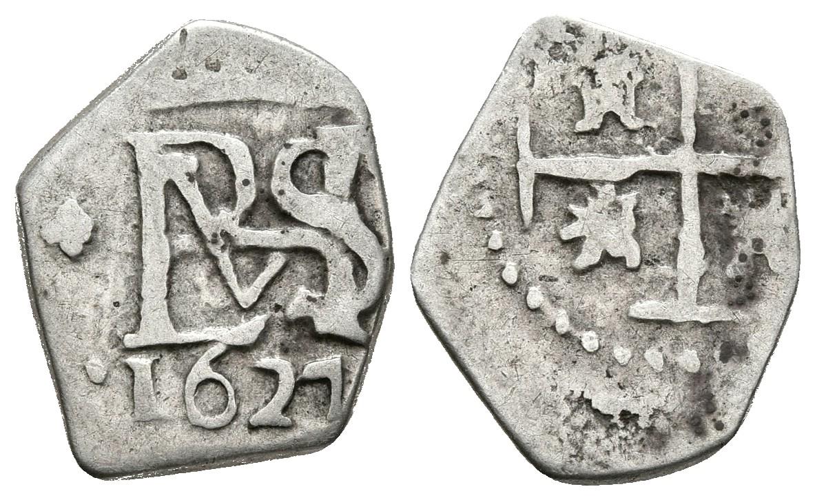 FELIPE IV. 1/2 Real. 1627. ¿Potosí?. ¿Cal-1160?. Ar. 1,52g. MBC. Escasa.