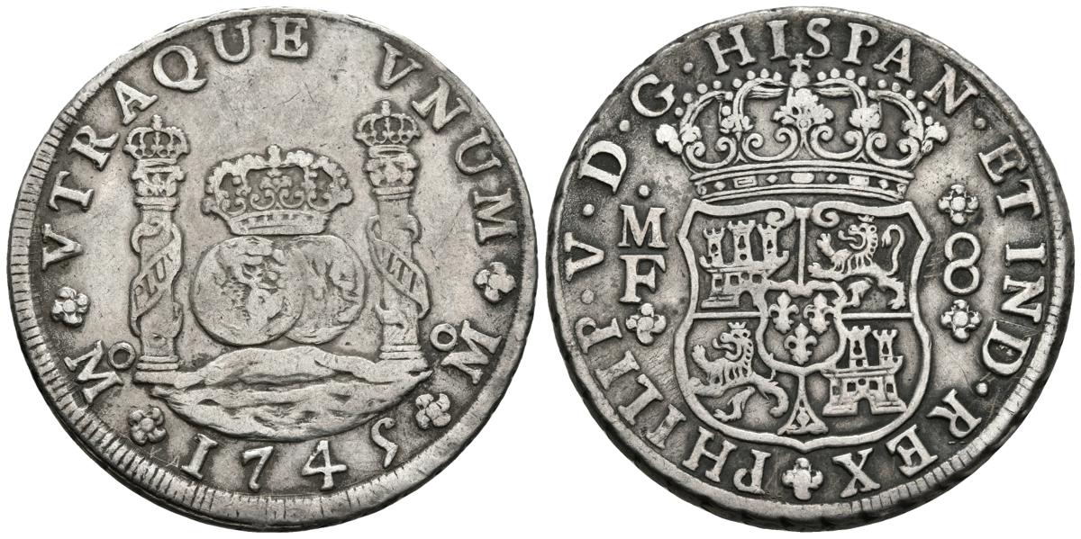 FELIPE V. 8 Reales. 1745. México MF. Cal-798. Ar. 26,75g. MBC.