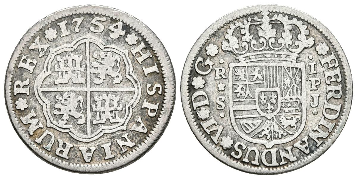 FERNANDO VI. 1 Real. 1754. Sevilla PJ. Cal-612. Ar. 2,62g. MBC-.