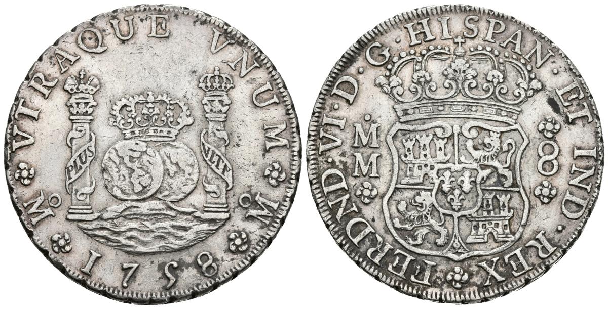 FERNANDO VI. 8 Reales. 1758. México MM. Columnario. Cal-343 Ar. 27,16g. MBC+.