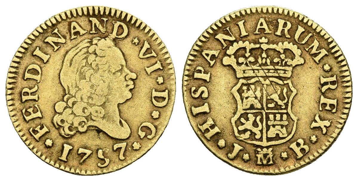 FERNANDO VI. 1/2 Escudo. 1757. Madrid JB. Cal-255. Au. 1,77g. MBC-.