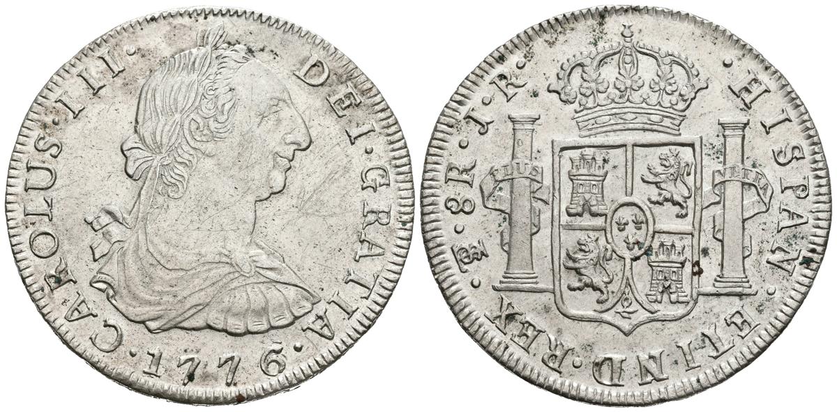 CARLOS III. 8 Reales. 1776. Potosí JR. Cal-976. Ar. 26,97g. Rayitas en anverso. Buen ejemplar. EBC/EBC+.