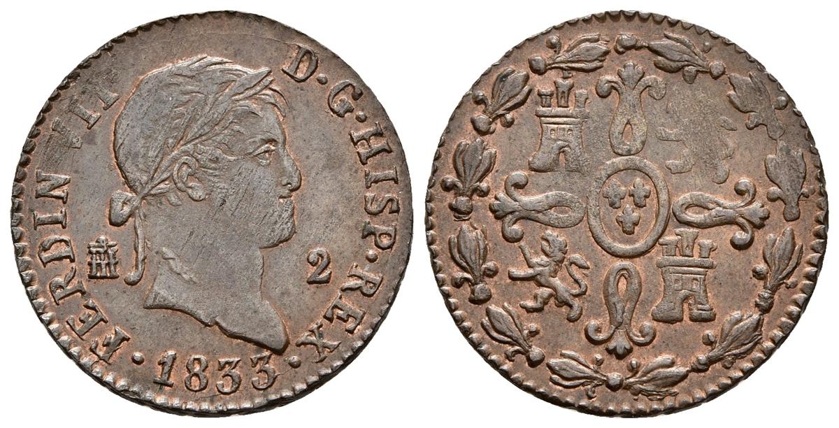 FERNANDO VII. 2 Maravedís. 1833. Segovia. Cal-1735. Ae. 2,18g. MBC+/EBC-.