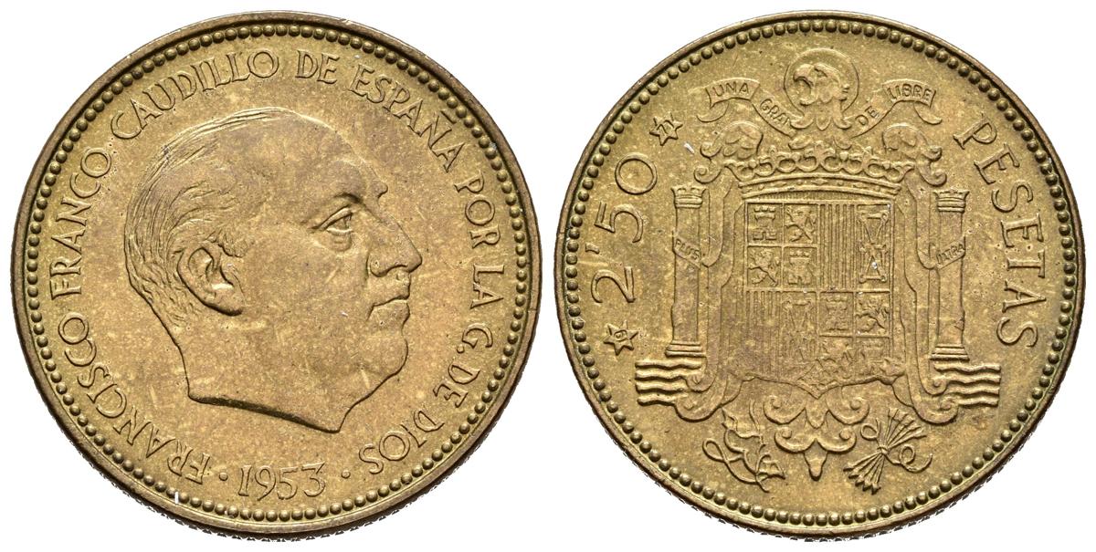 ESTADO ESPAÑOL. 2,50 Pesetas. 1953 *19-71. Procedente de la tira. De F.N.M.T. Cal-73. 7,00g. Leves marquitas. SC-.