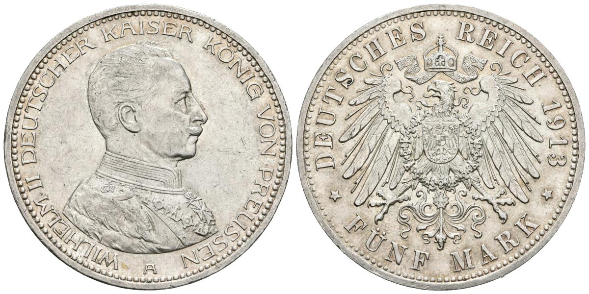 ALEMANIA. Prussia. Whilhelm II. 5 Mark. 1913. Berlín A. Km#536. Ar. 27,79g. MBC+.