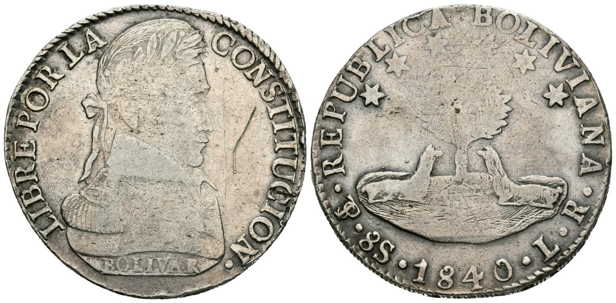 BOLIVIA. 8 Soles. 1840. Potosí LR. Km#97. Ar. 26,63g. Raya en anverso. MBC-.
